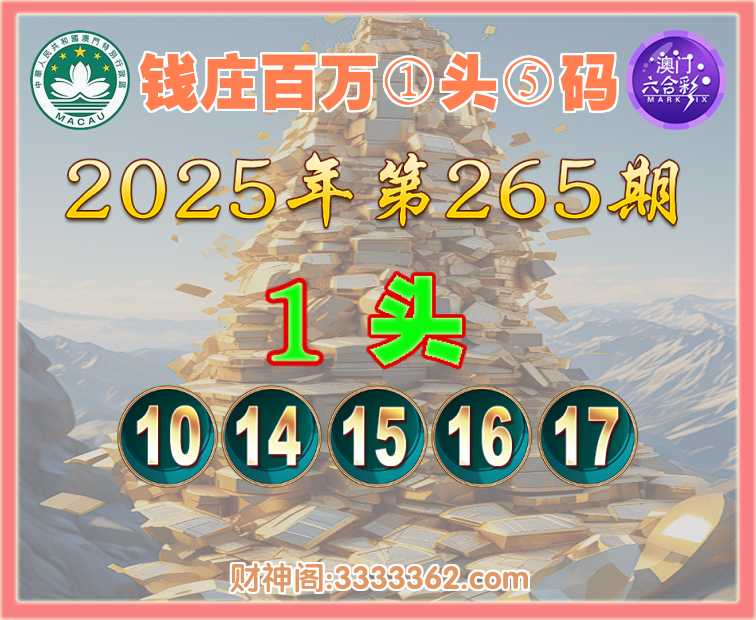 265期:〖钱庄百万〗 🎆①头⑤码🎆【1头主:10.14.15.16.17】开:10