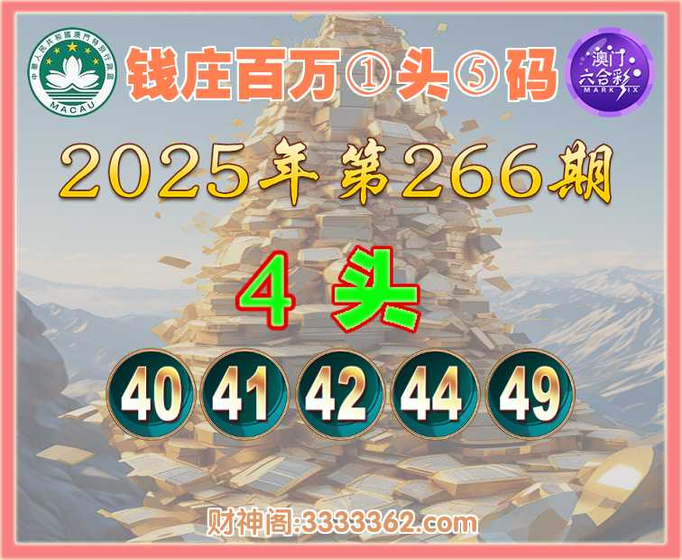 266期:〖钱庄百万〗 🎆①头⑤码🎆【4头主:40.41.42.44.49】开:41