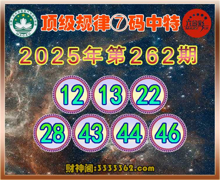 262期:《顶级规律》 🥓⑦码中特🥓【12.13.22.28.43.44.46】开:44