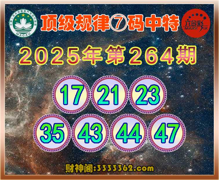 264期:《顶级规律》 🥓⑦码中特🥓【17.21.23.35.43.44.47】开:43