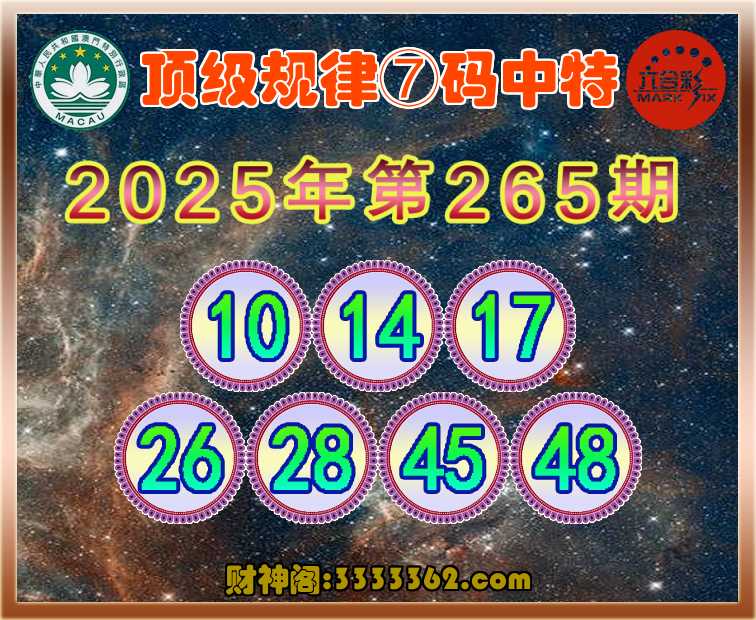 265期:《顶级规律》 🥓⑦码中特🥓【10.14.17.26.28.45.48】开:10