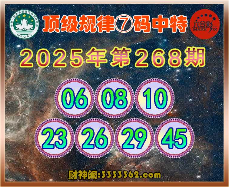 268期:《顶级规律》 🥓⑦码中特🥓【06.08.10.23.26.29.45】开:10