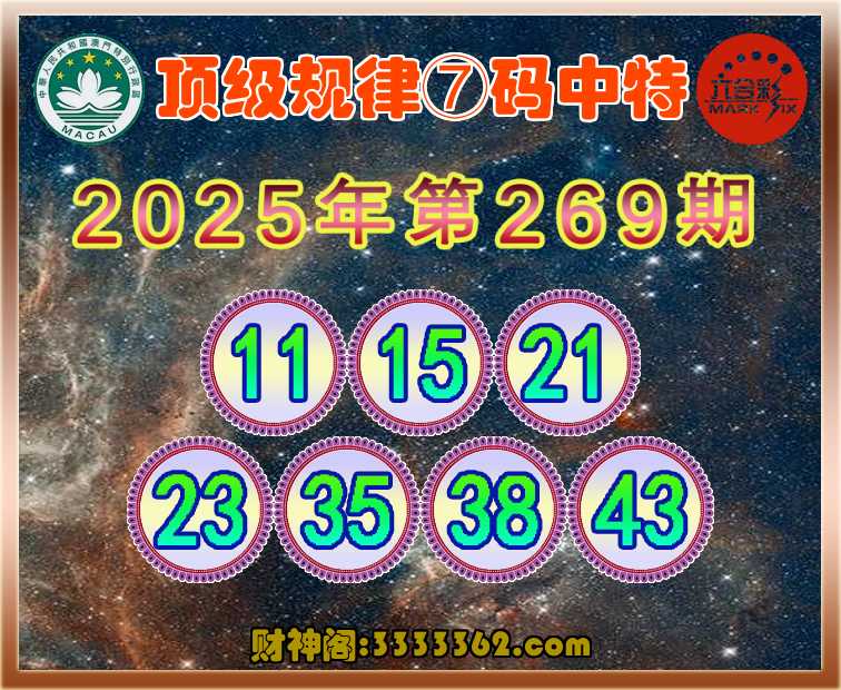 269期:《顶级规律》 🥓⑦码中特🥓【11.15.21.23.35.38.43】开:00准
