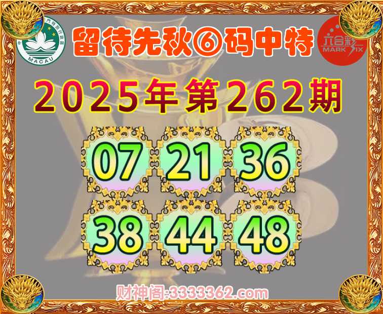 262期:【留待先秋】 🎯⑥码中特🎯【07.21.36.38.44.48】开:44