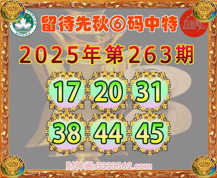 263期:【留待先秋】 🎯⑥码中特🎯【17.20.31.38.44.45】开:38