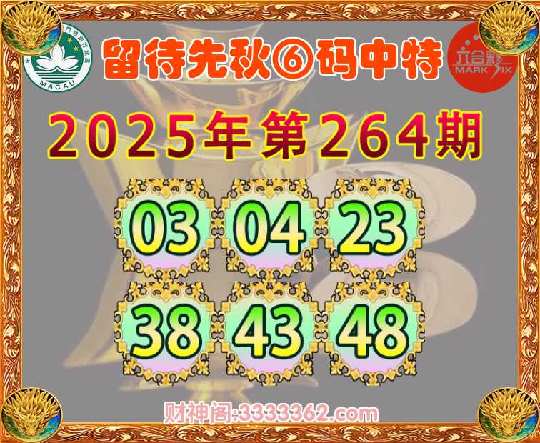 264期:【留待先秋】 🎯⑥码中特🎯【03.04.23.38.43.48】开:43