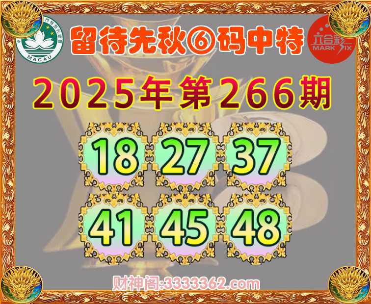 266期:【留待先秋】 🎯⑥码中特🎯【18.27.37.41.45.48】开:41