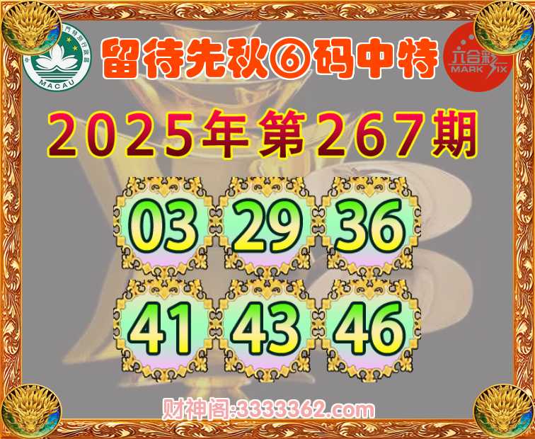 267期:【留待先秋】 🎯⑥码中特🎯【03.29.36.41.43.46】开:29