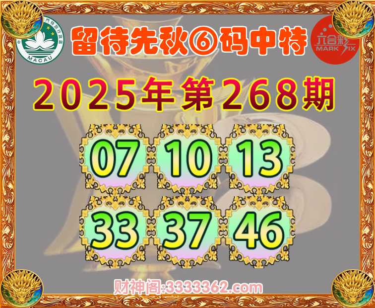 268期:【留待先秋】 🎯⑥码中特🎯【07.10.13.33.37.46】开:10