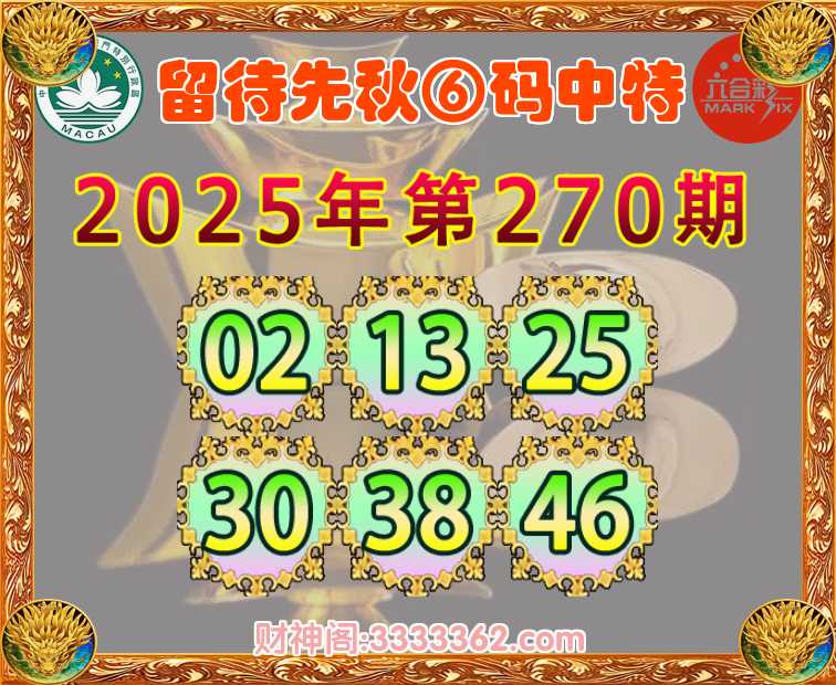270期:【留待先秋】 🎯⑥码中特🎯【02.13.25.30.38.46】开:00准
