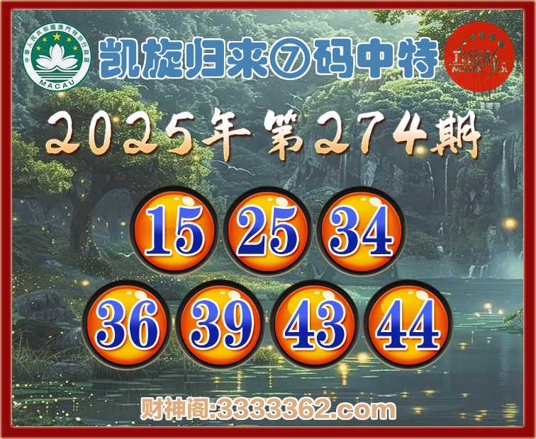 274期:《凯旋归来》 🧏‍♀️⑦码中特🧏‍♀️【15.25.34.36.39.43.44】开:44