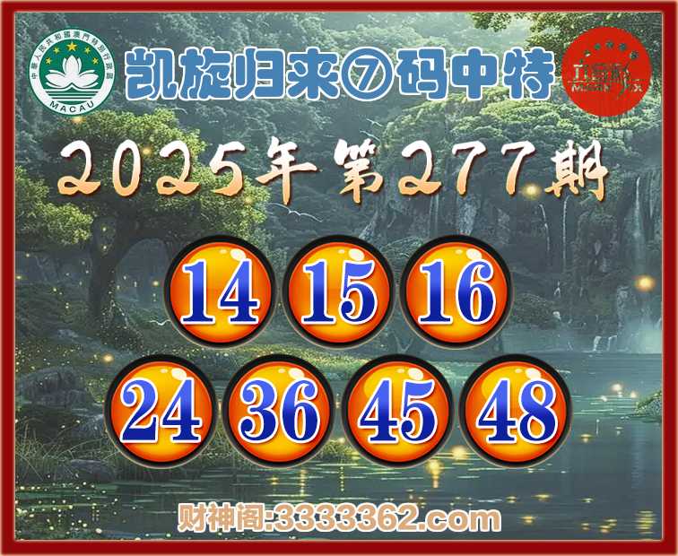 277期:《凯旋归来》 🧏‍♀️⑦码中特🧏‍♀️【14.15.16.24.36.45.48】开:16