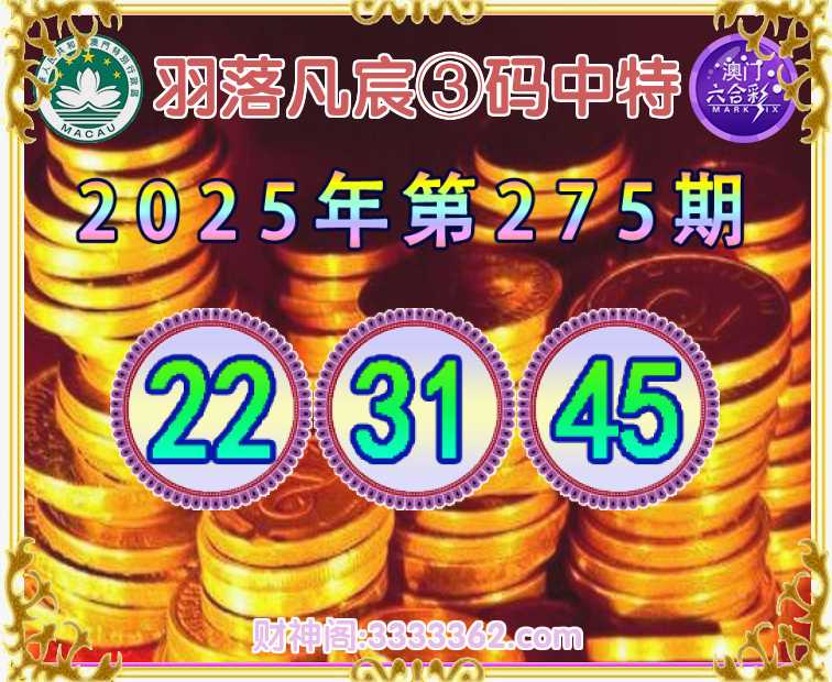 275期:『羽落凡宸』 🌲③码中特🌲【22.31.45】开:45
