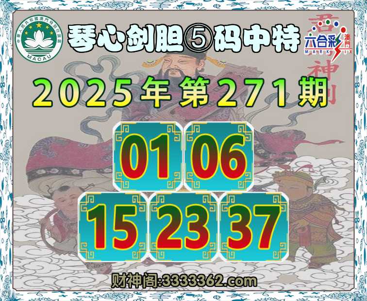 271期:【琴心剑胆】 ♥️⑤码中特♥️【01.06.15.23.37】开:06