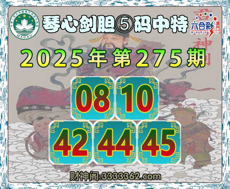 275期:【琴心剑胆】 ♥️⑤码中特♥️【08.10.42.44.45】开:45