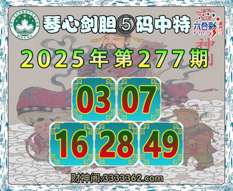 277期:【琴心剑胆】 ♥️⑤码中特♥️【03.07.16.28.49】开:16