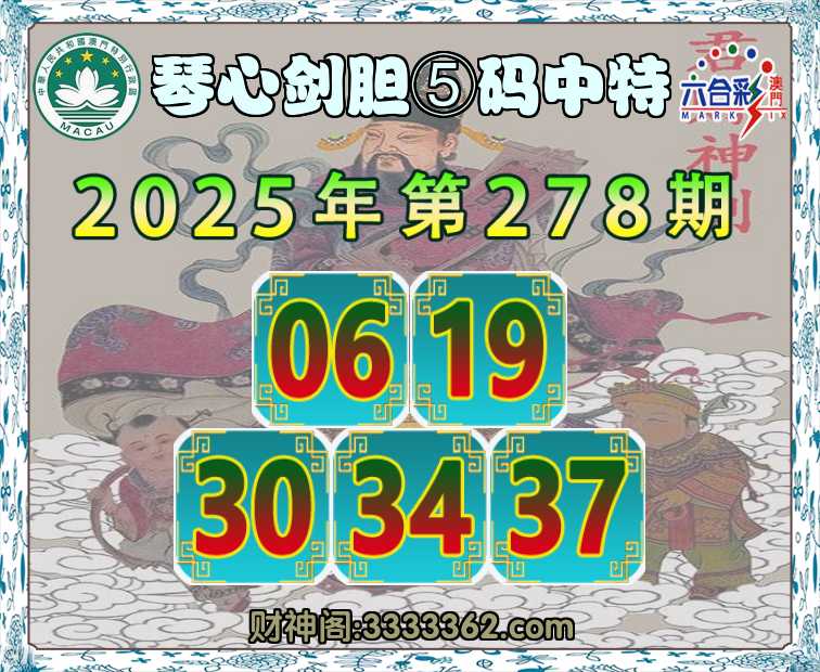 278期:【琴心剑胆】 ♥️⑤码中特♥️【06.19.30.34.37】开:00准
