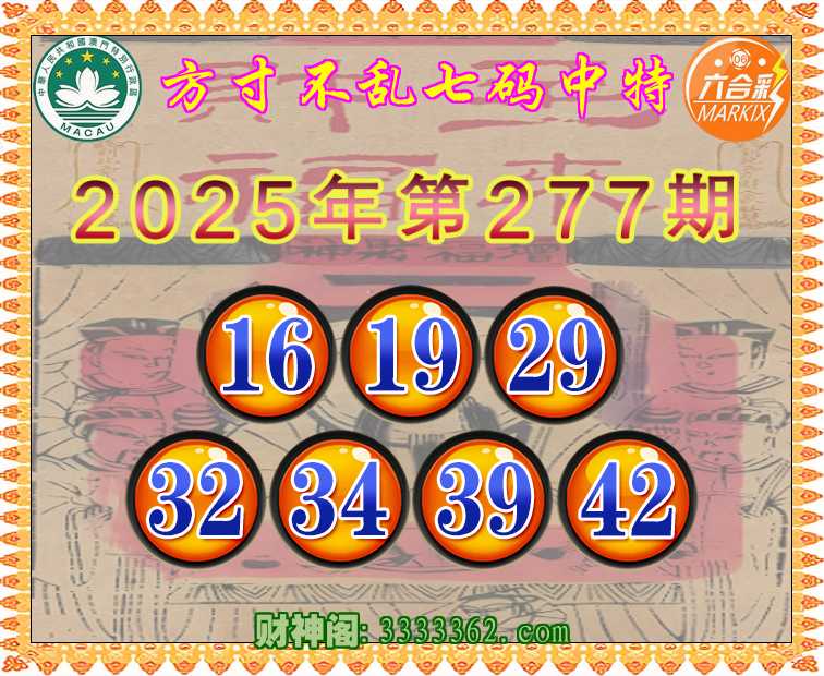 277期:【方寸不乱】 🍅七码中特🍅【16.19.29.32.34.39.42】开:16