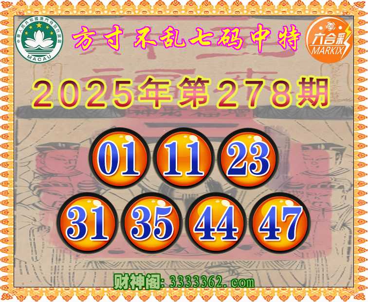 278期:【方寸不乱】 🍅七码中特🍅【01.11.23.31.35.44.47】开:00准