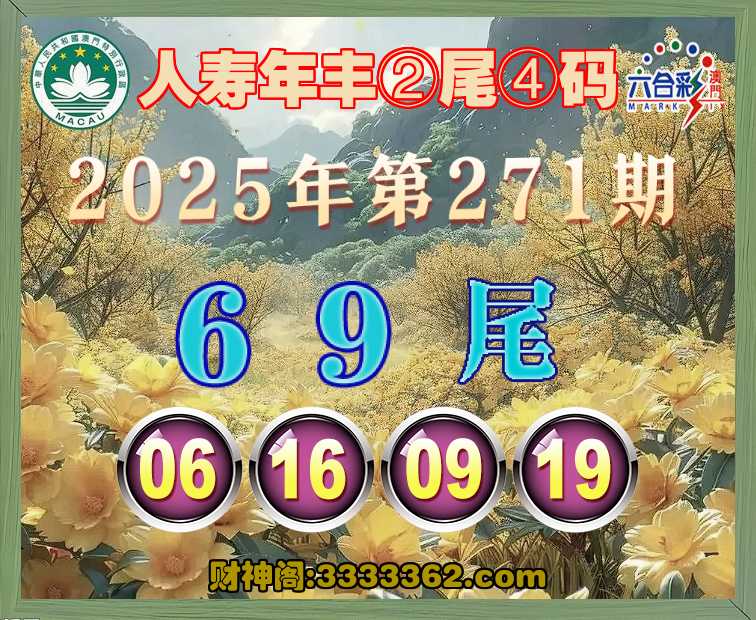 271期:【人寿年丰】 🥼②尾④码🥼【69尾主:06.16.09.19】开:06