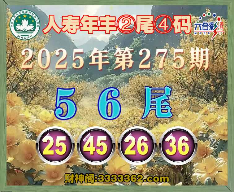 275期:【人寿年丰】 🥼②尾④码🥼【56尾主:25.45.26.36】开:45