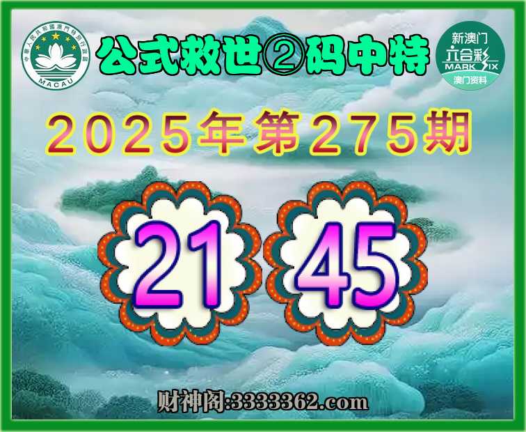 275期:『公式救世』 💎②码中特💎【21.45】开:45