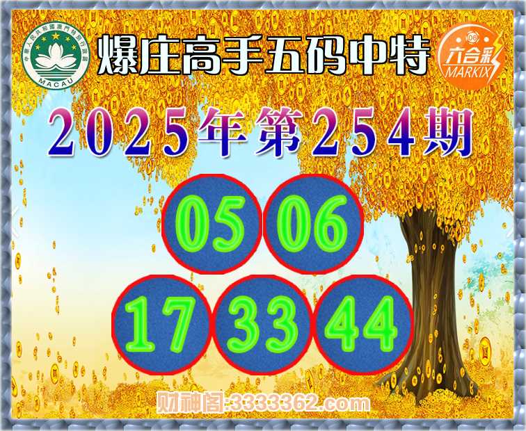 254期: 🍔『爆庄高手』 🍔五码中特🍔【05.06.17.33.44】开:17准