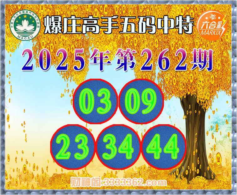 262期: 🍔『爆庄高手』 🍔五码中特🍔【03.09.23.34.44】开:44准