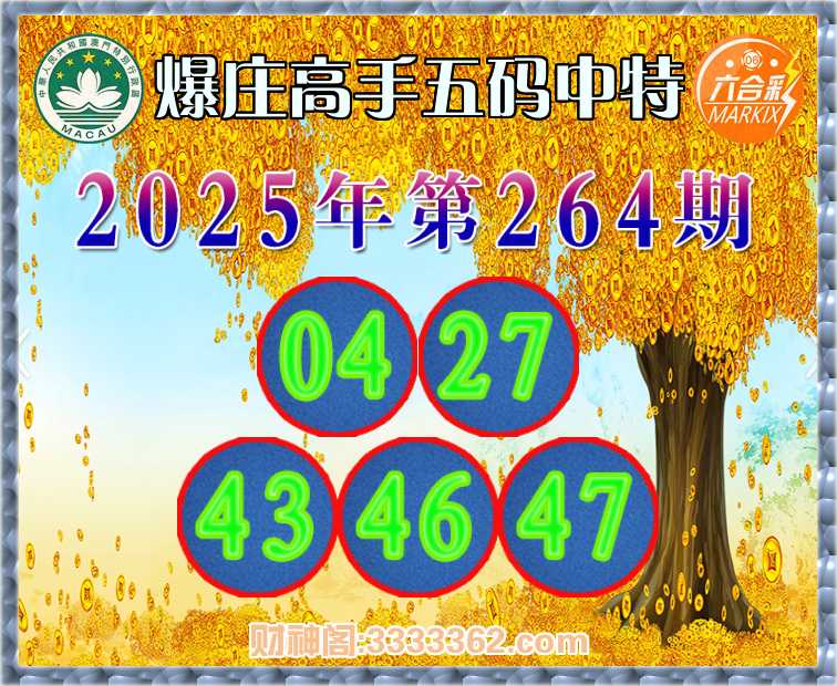 264期: 🍔『爆庄高手』 🍔五码中特🍔【04.27.43.46.47】开:43准
