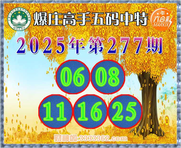 277期: 🍔『爆庄高手』 🍔五码中特🍔【06.08.11.16.25】开:16准