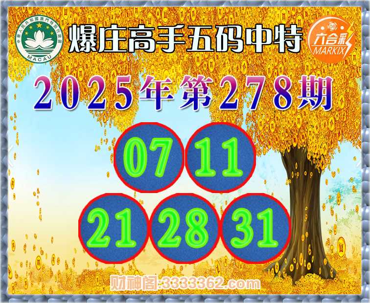 278期: 🍔『爆庄高手』 🍔五码中特🍔【07.11.21.28.31】开:00准