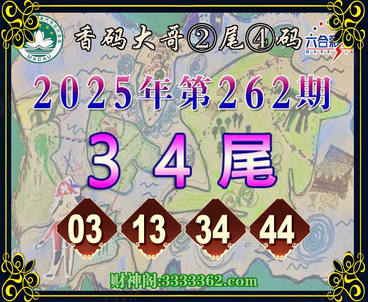 262期:【香码大哥】 ♣️②尾④码♣️【34尾主:03.13.34.44】开:44准