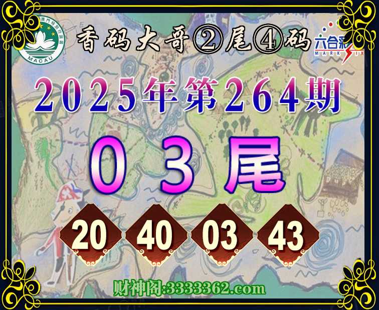 264期:【香码大哥】 ♣️②尾④码♣️【03尾主:20.40.03.43】开:43准