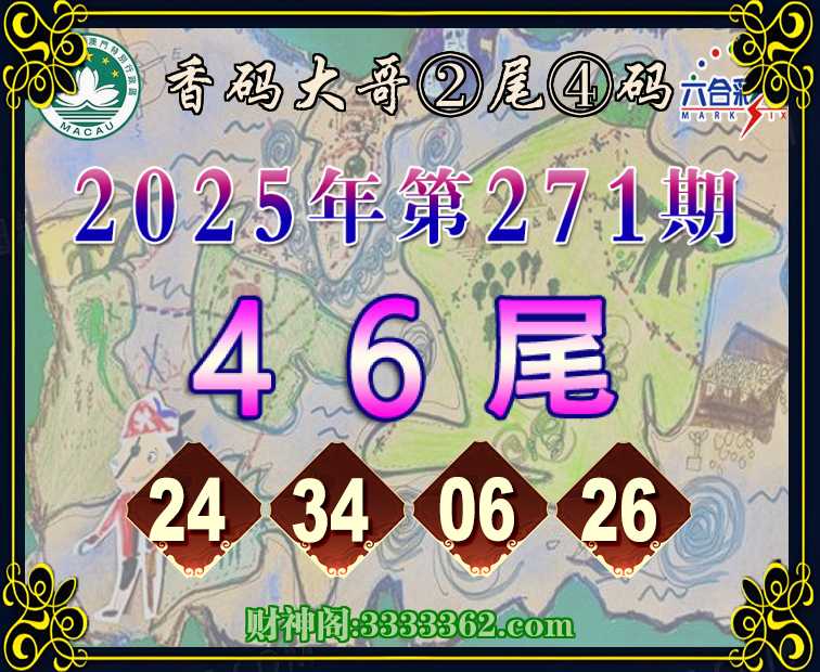 271期:【香码大哥】 ♣️②尾④码♣️【46尾主:24.34.06.26】开:06准