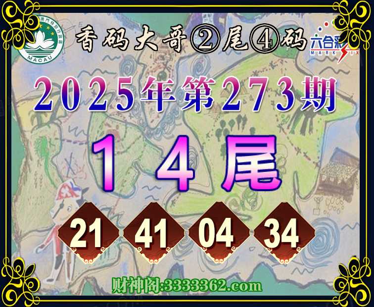273期:【香码大哥】 ♣️②尾④码♣️【14尾主:21.41.04.34】开:04准