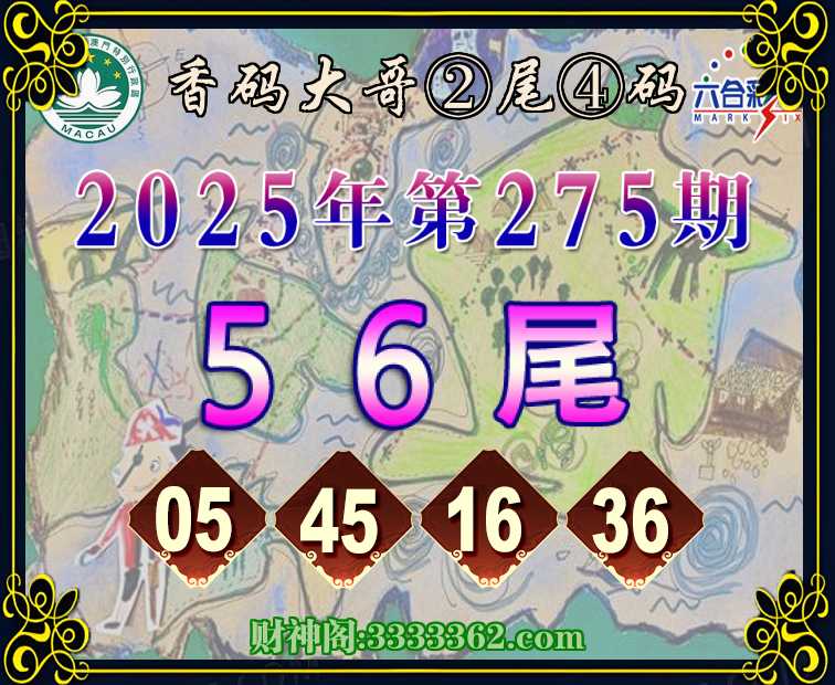 275期:【香码大哥】 ♣️②尾④码♣️【56尾主:05.45.16.36】开:45准