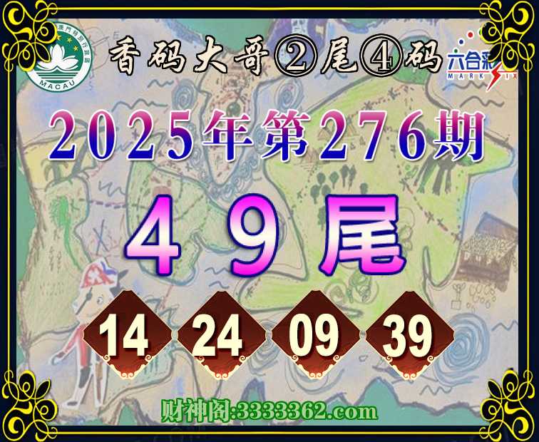 276期:【香码大哥】 ♣️②尾④码♣️【49尾主:14.24.09.39】开:09准