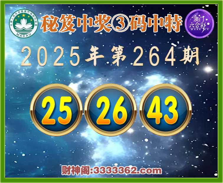 264期:『秘笈中奖』 🥬③码中特🥬【25.26.43】开:43
