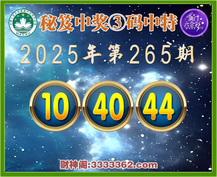 265期:『秘笈中奖』 🥬③码中特🥬【10.40.44】开:10