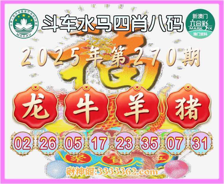 270期:【斗车水马】 🧏‍♀️四肖八码🧏‍♀️【龙牛猪】开:羊35