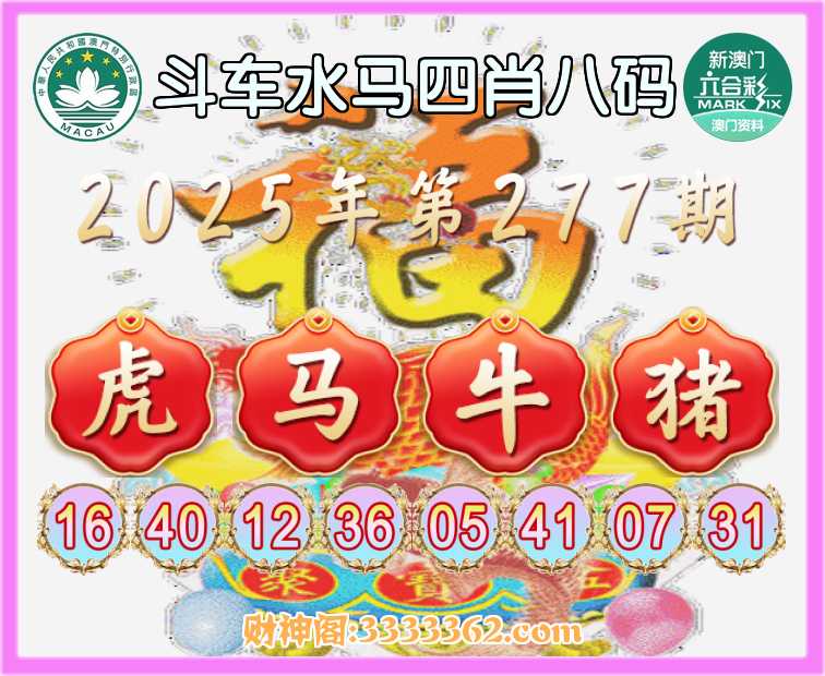 277期:【斗车水马】 🧏‍♀️四肖八码🧏‍♀️【马牛猪】开:虎16