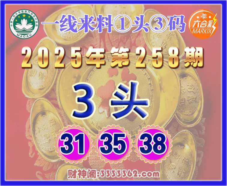 258期: 🏃‍♀️『一线来料』 🏃‍♀️①头③码🏃‍♀️【3头主:31.35.38】开:龙38
