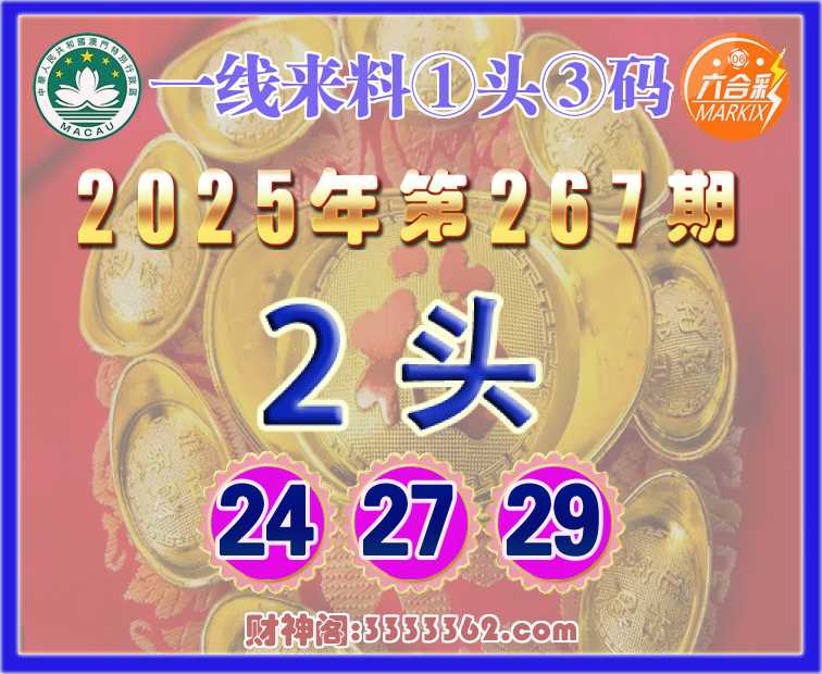 267期: 🏃‍♀️『一线来料』 🏃‍♀️①头③码🏃‍♀️【2头主:24.27.29】开:牛29