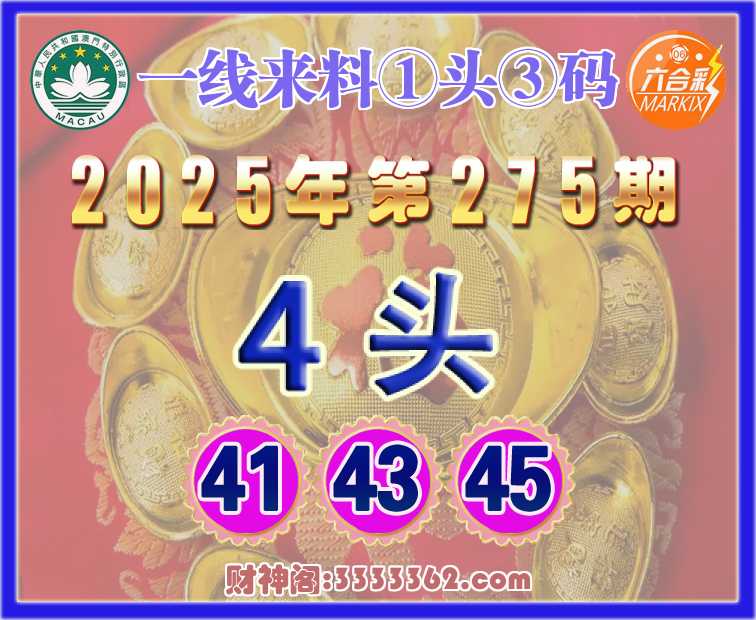 275期: 🏃‍♀️『一线来料』 🏃‍♀️①头③码🏃‍♀️【4头主:41.43.45】开:鸡45