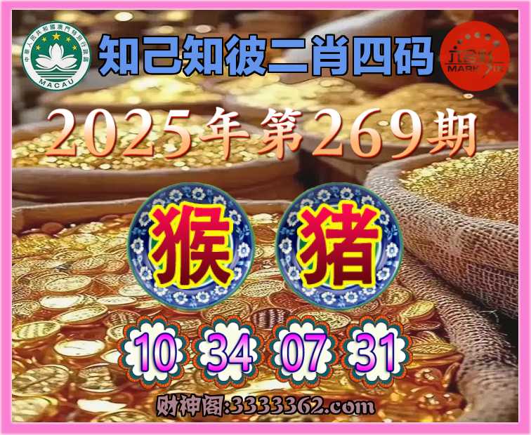 269期:『知己知彼』二肖四码⌚【猴】【10.34.07.31】开:猪31