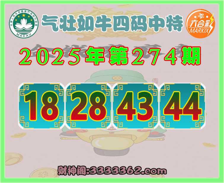 274期:〖气壮如牛〗 😳四码中特😳【18.28.43.44】开:44