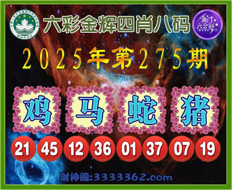 275期:『六彩金辉』 👚四肖八码👚【马蛇猪】开:鸡45