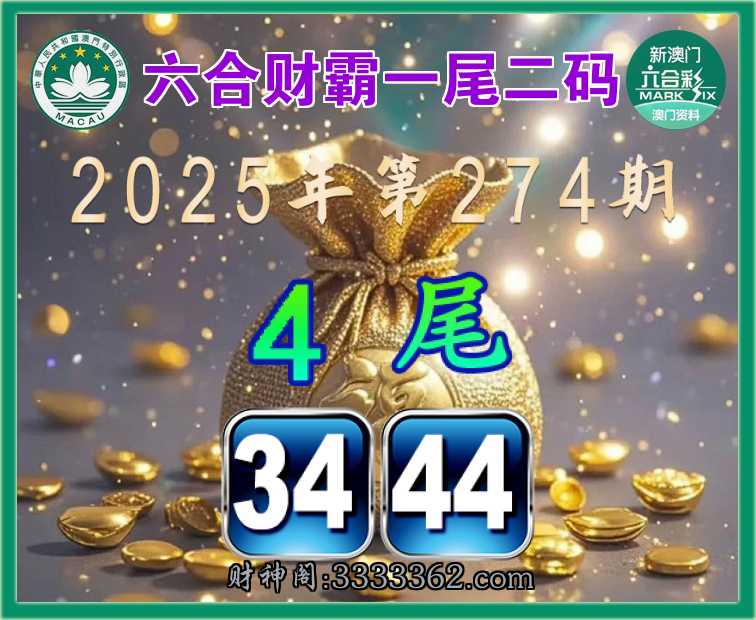 274期: 六合财霸 🧦一尾二码🧦【4尾主:34.44】开:44