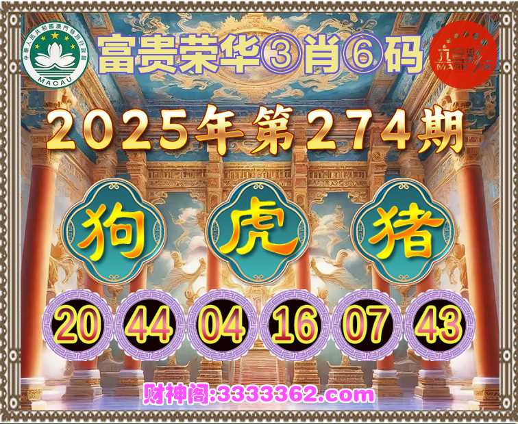274期:『富贵荣华』 🏃‍♀️③肖⑥码🏃‍♀️【虎猪】开:狗44