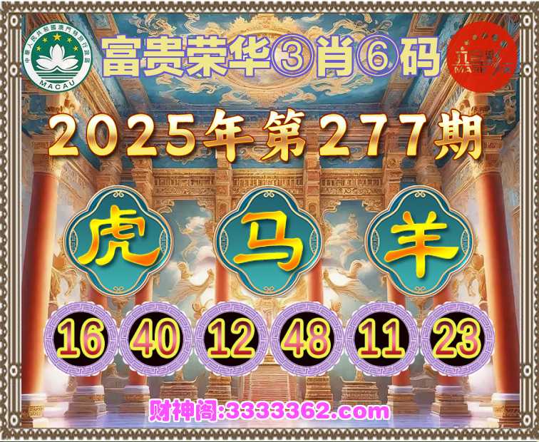 277期:『富贵荣华』 🏃‍♀️③肖⑥码🏃‍♀️【马羊】开:虎16